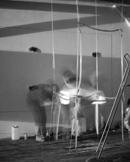 Ausblick I Aktion I Detail I PE-Folie, PVC-Schlauch, Korken, Perlonfaden, Einwegspritze, Schnur, Nägel, Wasser, Chemikalien, Blut I 1969