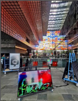 Ausstellungsansichten mit dem Video von Helmut Schweizer IN SOLCHER NACHT#dreams@acrobats&clowns [ukraine night], 2022